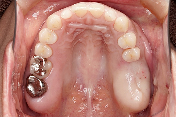 GBR(骨造成)と歯肉移植を併用した奥歯インプラント2本症例