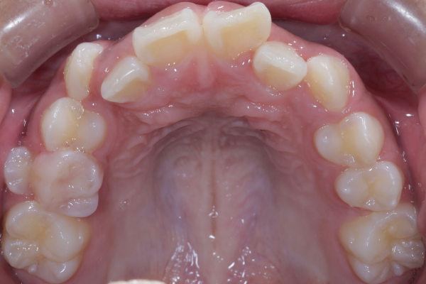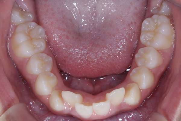 精密検査では、前歯部を中心とした叢生(歯の重なり)が確認され、現在だけでなく将来的な口腔環境も考慮した治療方針について詳しくご説明した上で、矯正治療を開始することとなりました。