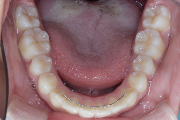 ●矯正終了後は後戻りを防止するために歯の裏側から固定し、上下マウスピースを使用していただきます。