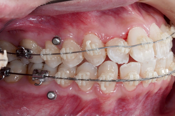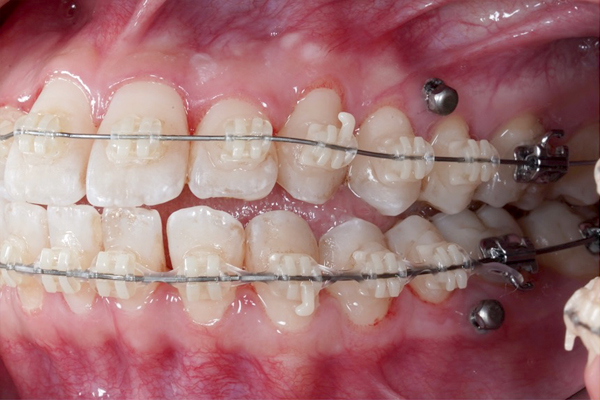 • インプラントアンカーにより歯を後ろに動かします。