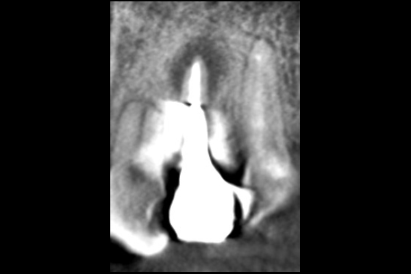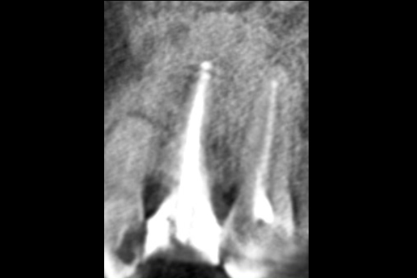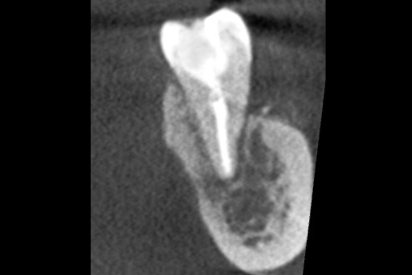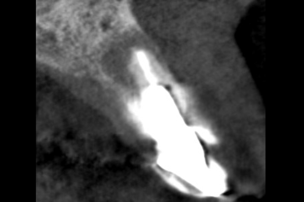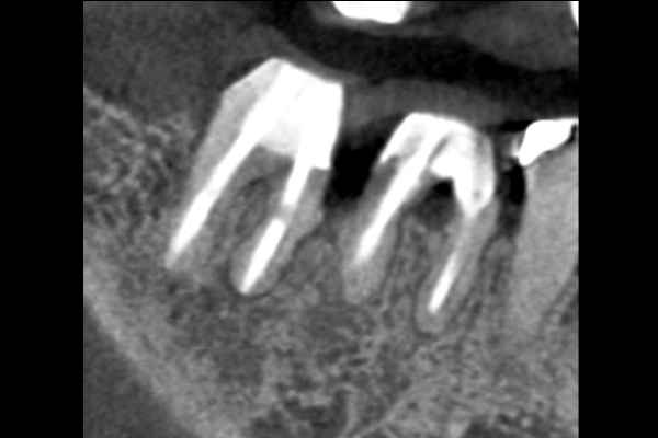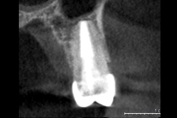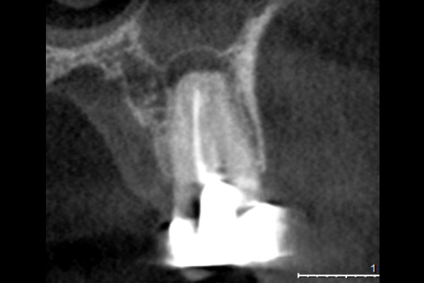 根管内が完全にクリーンになったことを確認し、再感染を防ぐために専用の薬剤で隙間なく密閉しました。