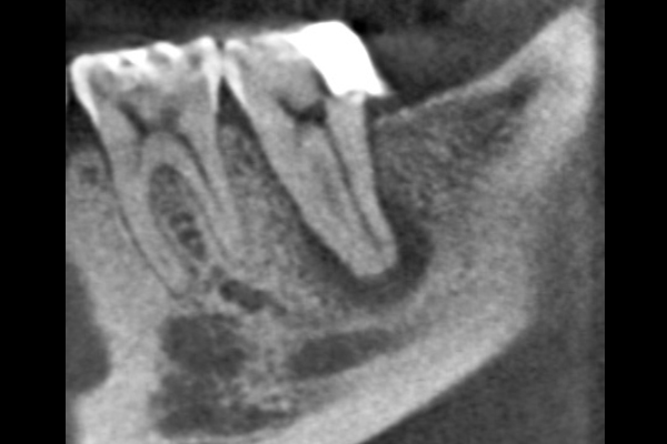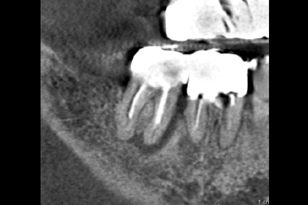 「奥歯で咬むと違和感がある」「時々歯茎が腫れる」とのことでご来院されました。数週間前から症状があり、他の医院では「抜歯の可能性がある」と言われ、不安に感じていらっしゃいました。