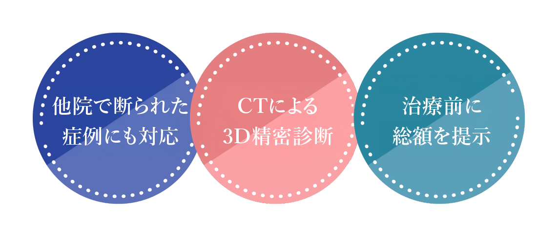 まず重要なのは、歯科用CTによる精密診断が行われているかどうかです。